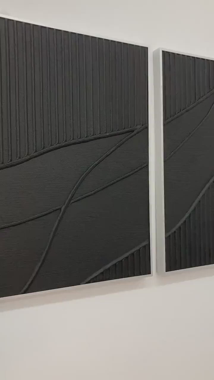 Introducing Duality, a set of two minimalist paintings that exude luxury in every stroke. Crafted with a profound attention to detail, these pieces feature 3D black waves that dance across the canvas, embodying both the power and the grace of the sea. Inspired by the minimalist ethos, this duo captures the essence of sophistication and elegance, making it an impeccable addition to any refined living space or gallery. The contrast of the striking black against the subtle textural depth invites viewers to a deeper contemplation of nature’s simplistic beauty.