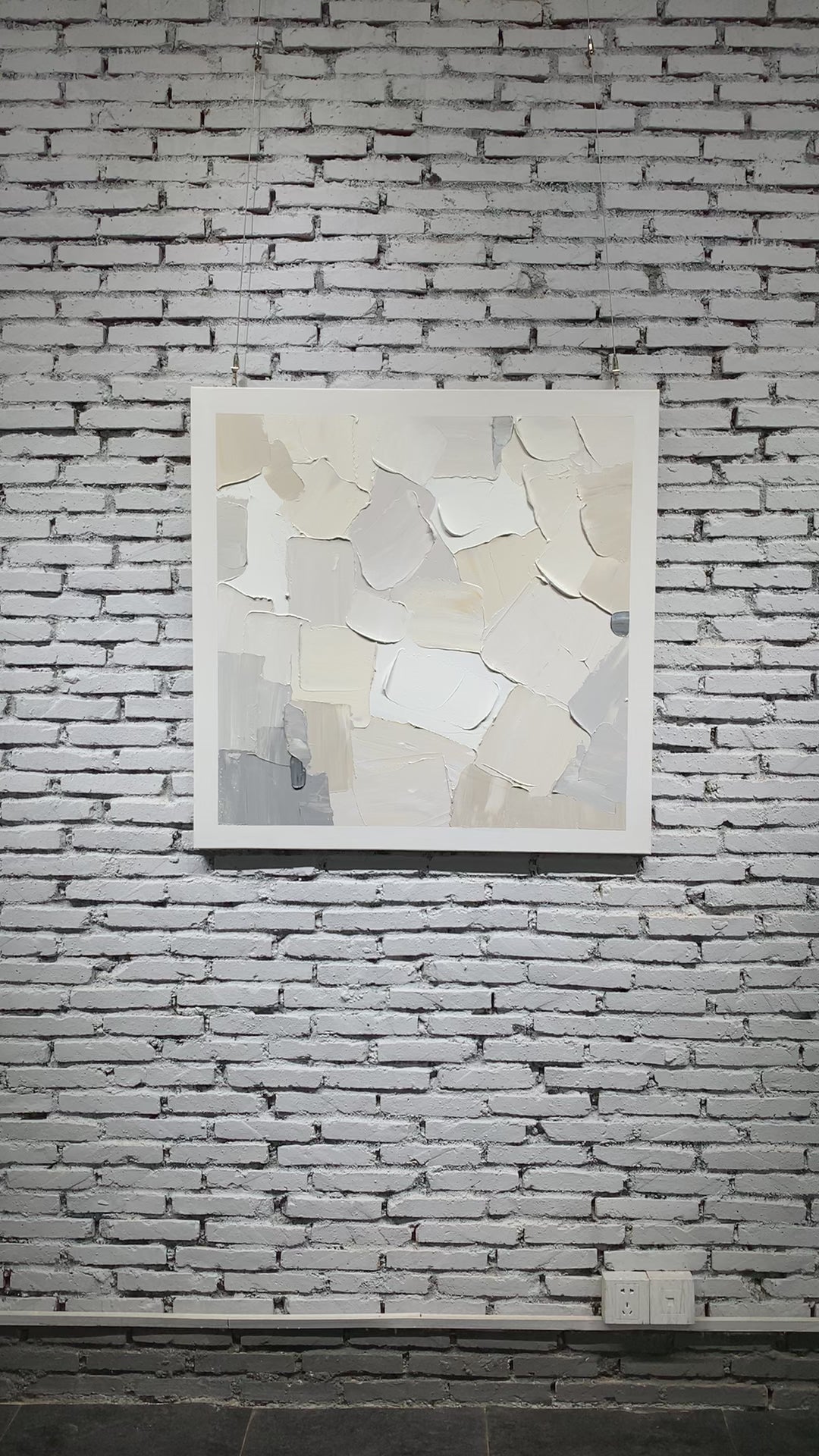 Explore the depths of simplicity with the Grayscale Harmony This abstract painting delves into the spectrum of grays and whites, utilizing a rich variety of textures to add complexity to its minimalist design. The piece subtly plays with light and shadow, inviting the viewer to appreciate the intricate details within a seemingly simple composition. It's an ideal choice for those who value art that blends seamlessly with a minimalist decor while still providing visual interest and emotional depth.